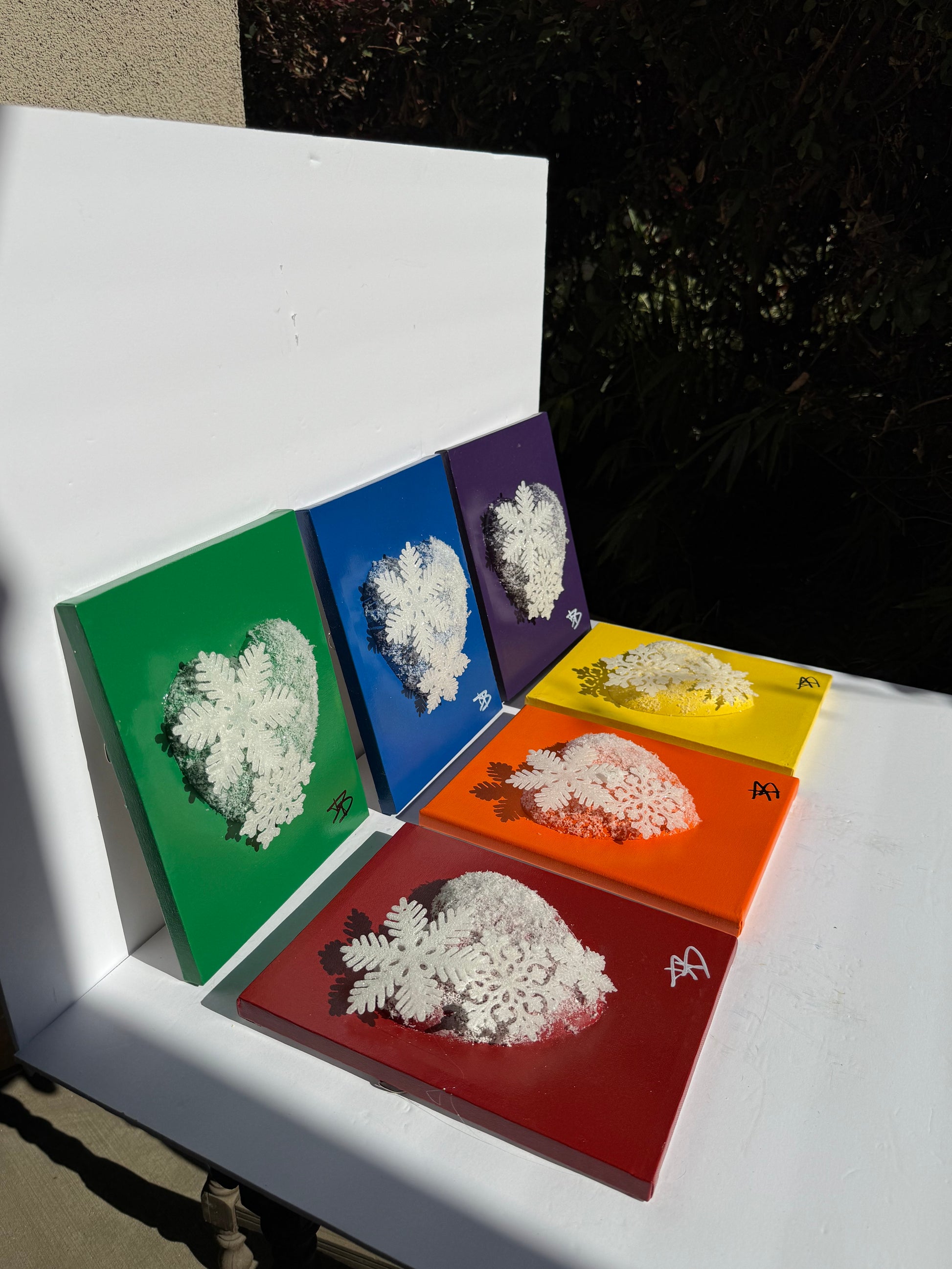 The image showcases the colors that are available for the Cold-Hearted series. The listed price is for one individual piece. You will receive one piece of artwork based on the color you choose.